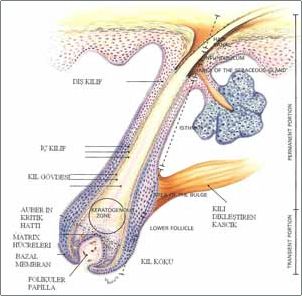 Anagen Devre : Kıl folikullerinin aktif olduğu dönemdir.Kişiden kişiye ve vücut bölgelerine göre değişmekle birlikt e bu devre yaklaşık 3 yıl veya daha uzundur. Katogen Devre: Anagen devre ile dinlenme devresi arasındaki geçiş dönemini kapsar. Folikulün kısalması ile kendini gösterir bir kaç gün içinde tamamlanır.